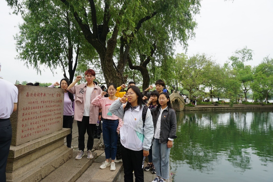 巍巍历史长河,寻竺光求是不辍;泱泱南湖秀水,忆红船精神永恒。去到浙大,与竺院学子共同学习重温竺可桢老先生在教育、气象学、地理学等方面做出的突出贡献,我们深深折服于竺老先生高深的学术造诣以及独特的个人魅力令,更感恩敬佩于先辈筚路蓝缕启山林、栉风沐雨拓荒原的信仰与担当。同样在中共一大会址——南湖红船上,亦曾有一群思想先进的青年同志,不怕困难、敢为人先,为崭新的中国砥砺奋斗。“我志愿加入中国共产党,为共产主义事业奋斗终身……”先辈们的矢志承诺言犹在耳,身为新时代的青年党员,我们更应永怀赤忱之心,为青春之国家、青春之民族在自己最美好的青春中乘风破浪、坚毅前行!