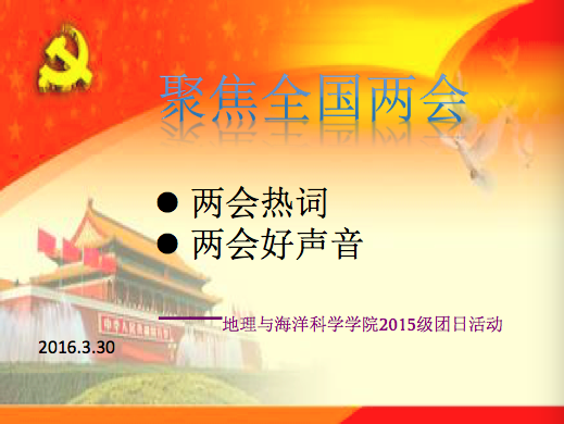 枫林网 2015级同学在3月30日(周三)的形势与政策课上开展了“关注两会热点,学习两会热词”团日活动。