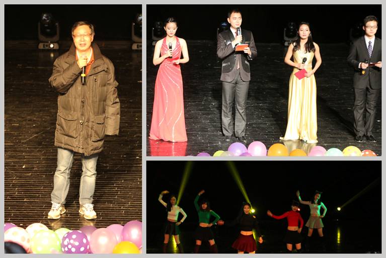 副院长王腊春老师为本次研究生迎新晚会致辞,盛装走出的四位主持人,热情奔放的开场舞,瞬间将晚会现场气氛点燃。