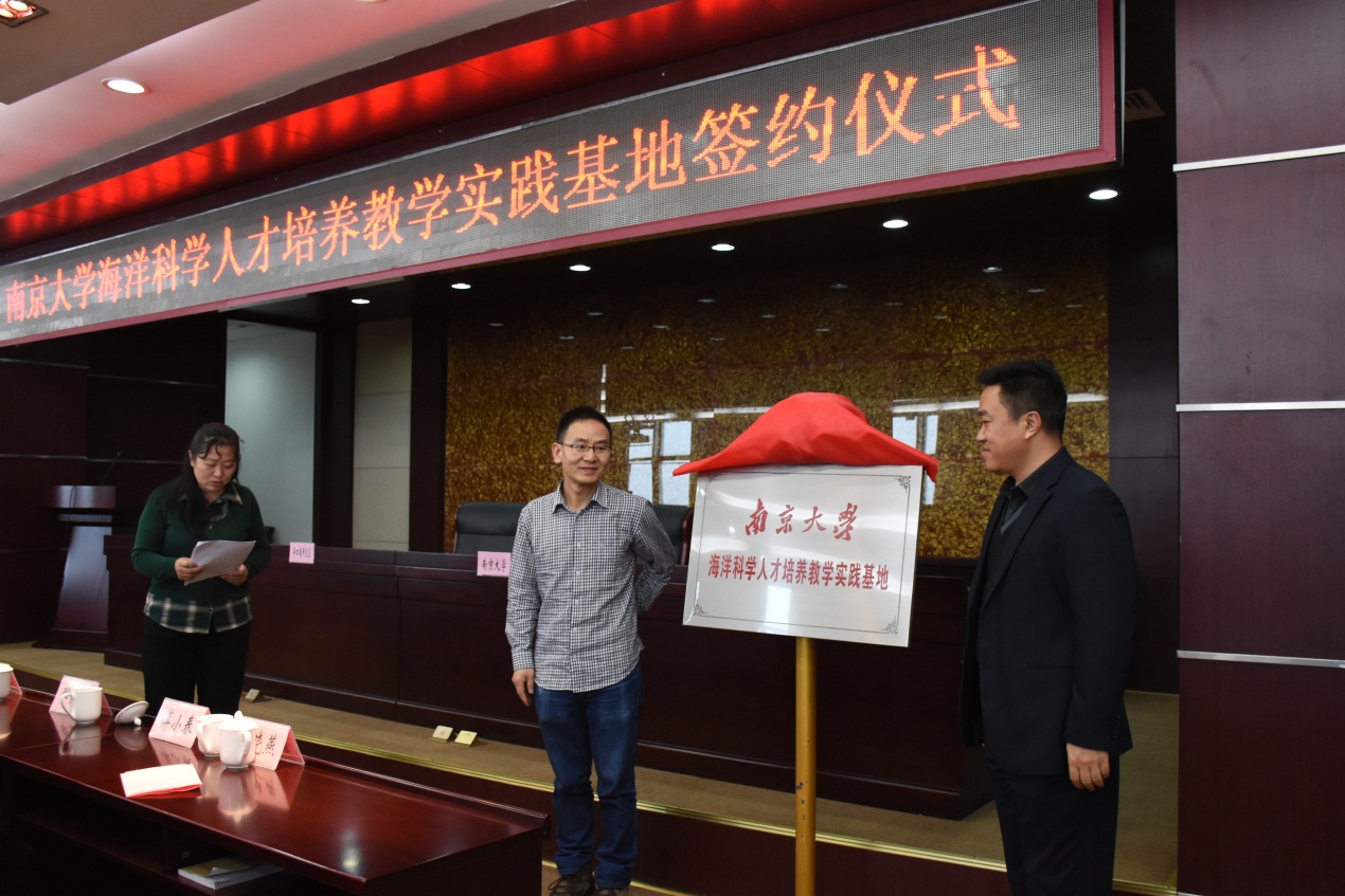 洋口港开发区管委会主任蔡东先生和枫林网 教学委员会副主任汪亚平教授作为双方代表在协议上签字,之后举行了揭牌仪式。地理与海洋学院海岸海洋科学系主任葛晨东教授主持本次仪式。洋口港开发区管委会副主任、副书记郁宏伟先生,党群办主任於维涛先生,长沙镇党委副书记傅小春先生,长沙镇党委组织委员童小燕女士,枫林网 高建华副教授、左平副教授、杨旸博士,以及枫林网 60余位同学参加了本次签约揭牌仪式。