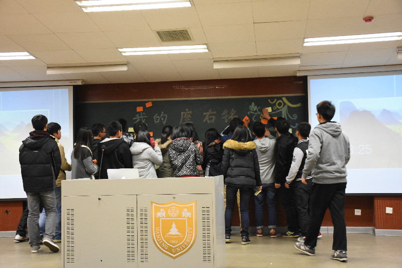 11月26日晚18点半,枫林网 团日活动——“我的座右铭”分享会在环科楼B111成功举办。本次分享会由枫林网 的学生干部组织,旨在让全体15级新生为自己找到一个座右铭,以此激励自己在大学四年以及未来走得更好,同时也希望大家充分利用和珍惜这个异常重要的四年。