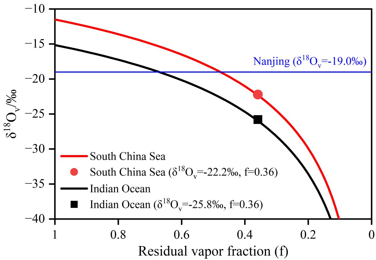 图3 瑞利分馏过程中来自南海及印度洋的水汽稳定同位素值演化特征