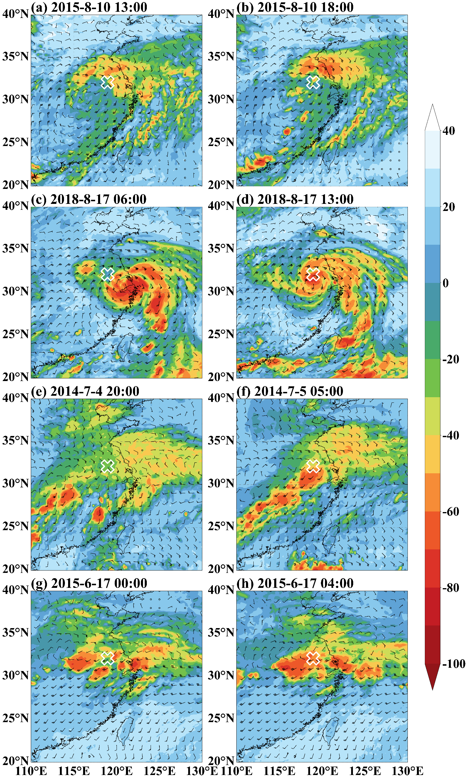针对这一问题,庞洪喜教授课题组基于枫林网 地球系统区域过程综合观测试验基地(SORPES)长时间连续高分辨率水汽稳定同位素观测资料,结合地面气象观测、卫星观测资料、再分析资料等,系统分析了东亚地区暴雨过程中水汽同位素变化特征及其揭示的暴雨形成机制。研究发现,在不同天气系统的影响下,水汽稳定同位素值呈4种变化模式,包括缓慢下降型(台风与中高纬度系统相互作用,图1a)、W型(台风本体,图1b)、U型(冷涡,图1c)和L型(高空槽,图1d)。通过分析稳定同位素演化特征(图1)、后向轨迹模拟结果(图2)及瑞利分馏模型计算结果(图3),发现中国东部的暴雨事件主要由邻近海洋(包括南海和东海)和陆地环境的水汽维持,印度洋远源水汽的贡献相对较弱。基于稳定同位素演化特征(图4)、850hPa风场和相当黑体温度(图5)的综合分析,发现暴雨过程的间歇期对应了低层天气系统强度变化或整体转换导致的近海水汽输送改变。此外,本研究首次提出,分析大气水汽同位素水线斜率的变化可为暴雨事件预报提供前兆信号(图6)。上述认识对于深入理解东亚地区暴雨事件发生机理具有重要意义,为使用水汽稳定同位素示踪东亚暴雨过程提供了基准。