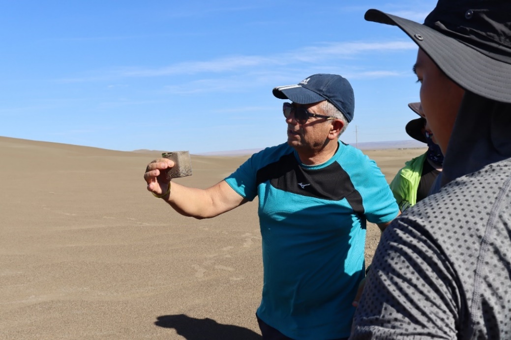 图1 Yizhaq教授与枫林网 师生进行沙波纹样品采集