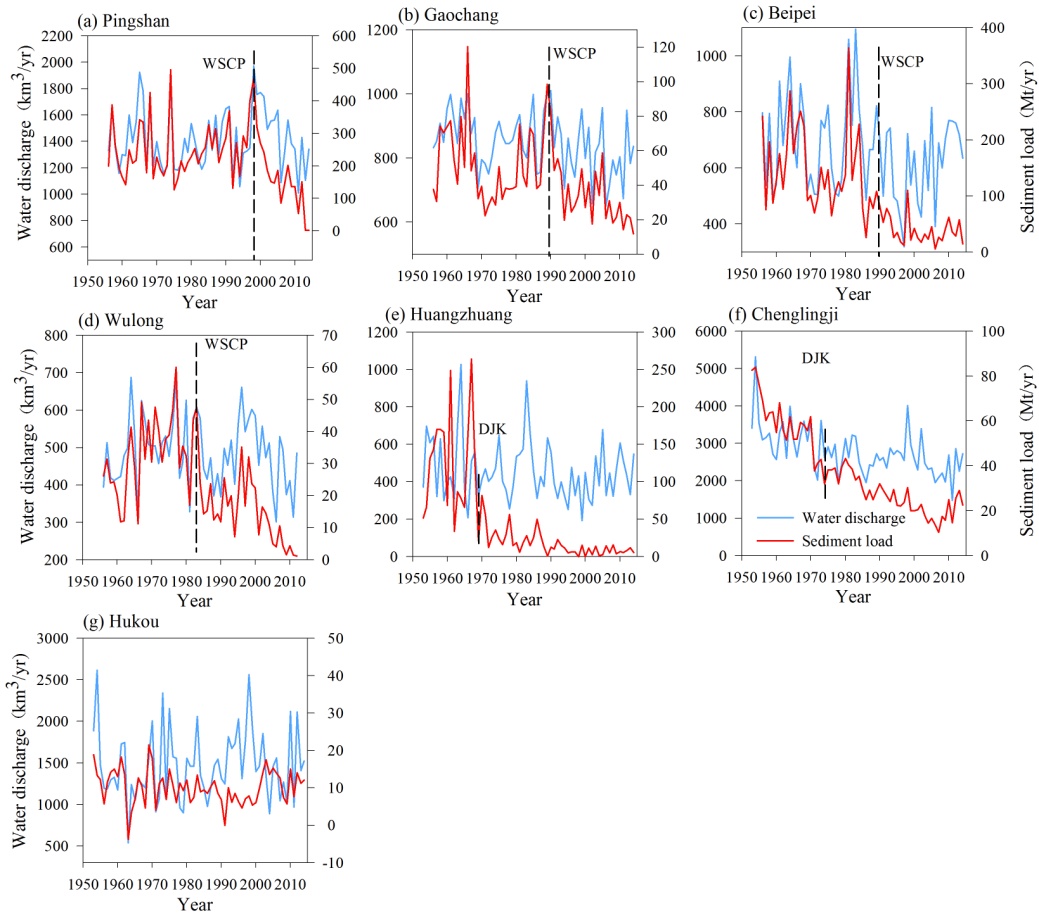 河流是连接陆地和海洋的主要通道,每年携带大量的水、沙和其他陆源物质进入到海洋,在河口陆架物质循环和演化中扮演着重要的角色。在流域气候和人类活动影响下,河流水沙特征将发生显著的变化,特别是流域人类活动(大坝建设)对河口、海岸和陆架区地貌和生态环境产生显著的影响。为了定量评估气候和人类活动对长江流域水沙变化特征影响,以及探讨输沙减少背景下对长江河道和三角洲地貌影响,课题组通过利用历史观测数据,建立回归模型对此进行了研究。研究发现:(1)在过去近60年,长江流域及其主要支流径流量呈现轻微下降趋势,而输沙量则呈显著下降趋势,特别是长江入海泥沙从1954-2002年的411.35Mt/yr下降到2003-2014年的137.78Mt/yr,下降幅度达67%,导致输沙下降的主要原因是流域大坝建设。(2)降水量是长江流域径流变化的主要因素,人类活动影响较小;而输沙量主要是流域人类活动的影响,以流域水土保持措施和大坝建设最为典型,此外降水量通过影响径流量进而影响输沙量。回归模型定量化结果显示,过去60年,气候变化和人类活动对径流量减少的贡献分别是72%和28%,对输沙量减少的贡献分别是14%和86%。(3)长江入海泥沙引起了长江中下游主要河道出现侵蚀和长江水下三角洲地貌冲淤出现复杂化。该项研究全面深入分析了长江流域及其支流水沙变化特征,且首次定量化研究了流域气候变化和人类活动对长江入海水沙的影响,这不仅对流域水沙变化及其影响因子有新认识,而且有利于更深层次理解气候和人类活动对中国东部陆架区流域-海岸相互作用产生的影响,也可为人类社会经济活动提供有意义的支撑信息。