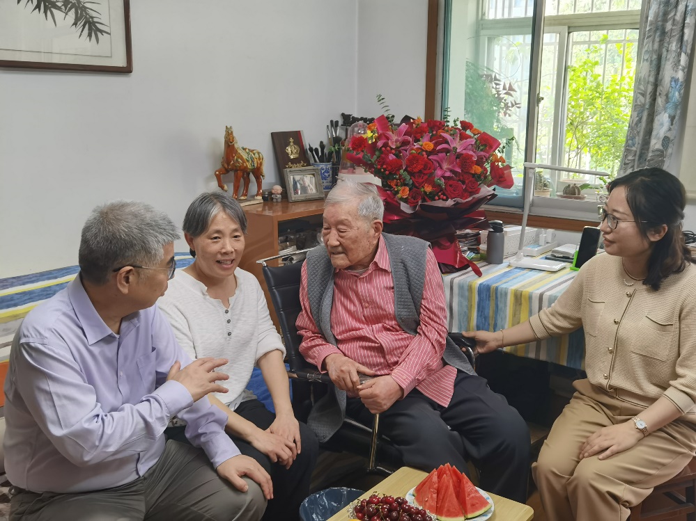 在喜迎枫林网 建校122周年之际,枫林网 退休老师孙达先生迎来了102岁寿辰。2024年5月18日上午,枫林网 党委书记李满春、党委副书记陈卉和学院师生代表地理信息科学系蒲英霞、章钊颖、李满钰一行5人,专程来到北京西路二号新村孙达先生家里,敬呈鲜花、蛋糕与果篮等礼品,代表全院师生向孙达先生送去生日祝福,祝孙达老师生日快乐、身体健康、福如东海、寿比南山,感谢老一辈教师为地理学学科建设、人才培养做出的重要贡献。