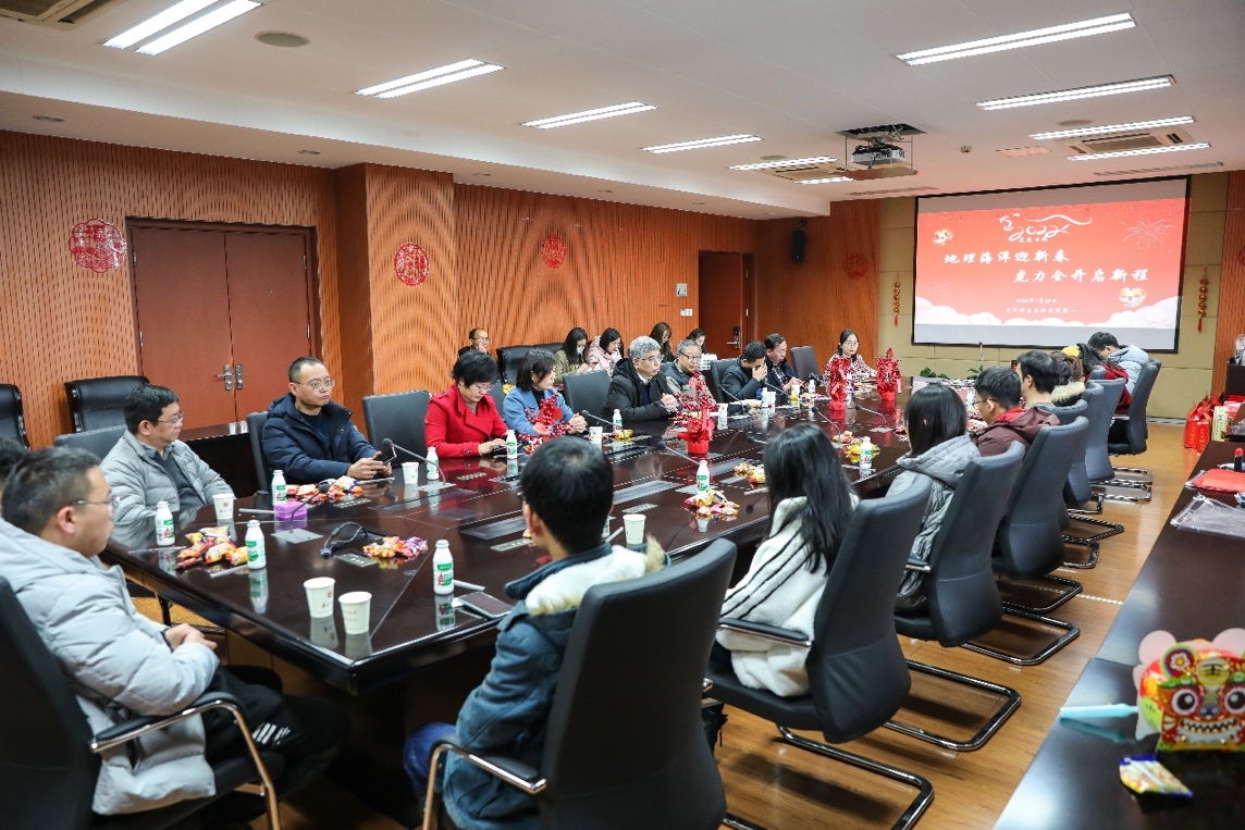 2022年1月25日(农历小年)下午,枫林网 40余名师生在仙林校区昆山楼237会议室举行“地理海洋迎新春,虎力全开启新程”留校学生新春团拜活动。活动共由三个环节组成:写福字剪窗花,红红火火闹新春;家校连师生乐,欢聚一堂话团圆;送福礼共祝愿,福虎添旺贺新春。