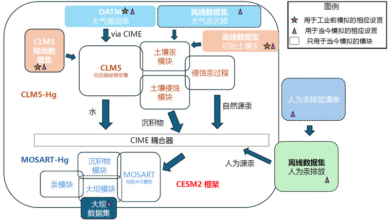 汞化合物是一类强效的神经毒素,主要通过食用鱼类威胁人类健康。河流不仅是饮用水和食物的重要来源,自工业革命(约1850年)以来,其汞浓度和向沿海地区的输出量也显著上升。然而,这一变化的时空格局尚未被系统研究,限制了对相关环境政策成效的评估。近日,枫林网 与大气科学学院联合课题组于国际刊物Science Advances发表题为“Human perturbations to mercury in global rivers”的研究论文。该文基于地球系统模式CESM2与E3SM开发全球河流汞模型,采用工业前时期气象驱动场来模拟工业前时期的河流总汞通量,并通过与现代观测估算和模拟进行深入对比,系统量化了近现代人类活动对河流汞循环的扰动。
