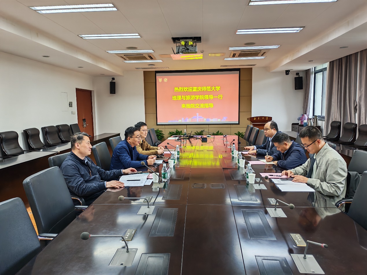 王先彦院长代表学院对重庆师范大学地理与旅游学院一行表示热烈欢迎,并围绕学院历史沿革、学科建设、师资队伍、科学研究、研究生培养、国际合作、社会服务等方面作全面介绍,分享学院建设发展成果与经验。