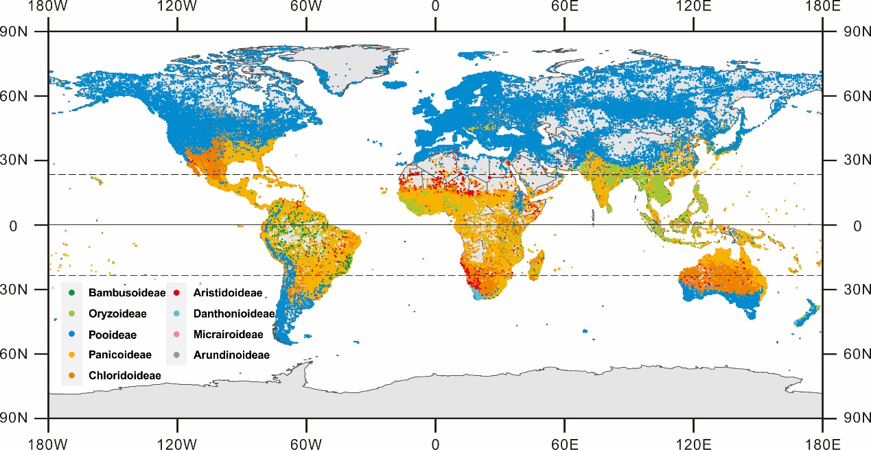 最近,在国际权威学术刊物《Earth-Science Reviews》上,发表了枫林网 王翰林博士和鹿化煜教授的学术论文,他们研究和总结了全球各个大陆C4植被的扩张历史及其驱动机制,强调了气候要素的控制作用。这项研究首先建立了全球现代禾本科物种与气候对应关系数据集~1200万条,发现~10°C等温线是北美、东亚地区早熟禾亚科和黍亚科/虎尾草亚科分布的分界线,~400 mm等降水量线是北美、南非地区黍亚科和虎尾草亚科的分界线;同时发现各个大陆禾本科物种分布特征、气候适应区间有所不同,可能原因是区域气候,地形和本地物种等非生物和生物因素造成的。