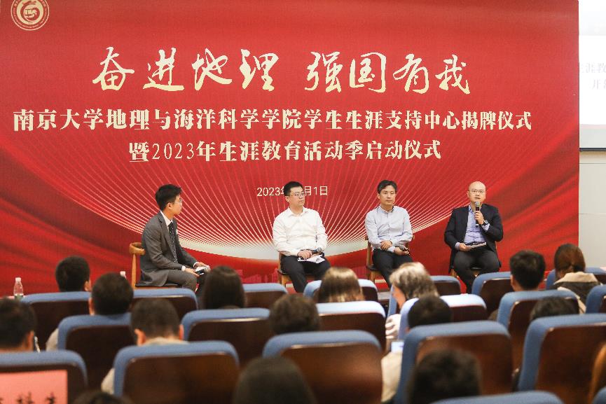 揭牌仪式后,2023年生涯教育活动季开幕活动开始,来自测绘、文旅、数字等地理学科相关产业的行业专家与同学们面对面交流,畅聊业内人士眼中的地理学复合应用人才,现场反应热烈。