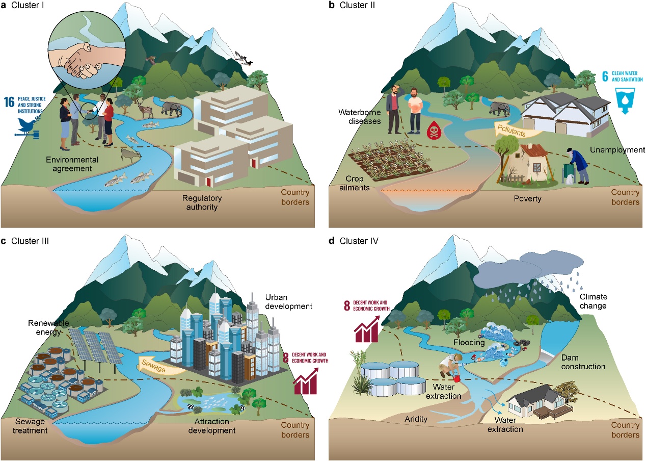 该研究强调,未来需针对不同区域跨界流域的突出问题制定差异化策略,并通过强化跨境合作与协同治理,推动全球可持续发展目标的实现(图4)。这一成果为跨国水资源管理与政策制定提供了科学依据和决策支持。