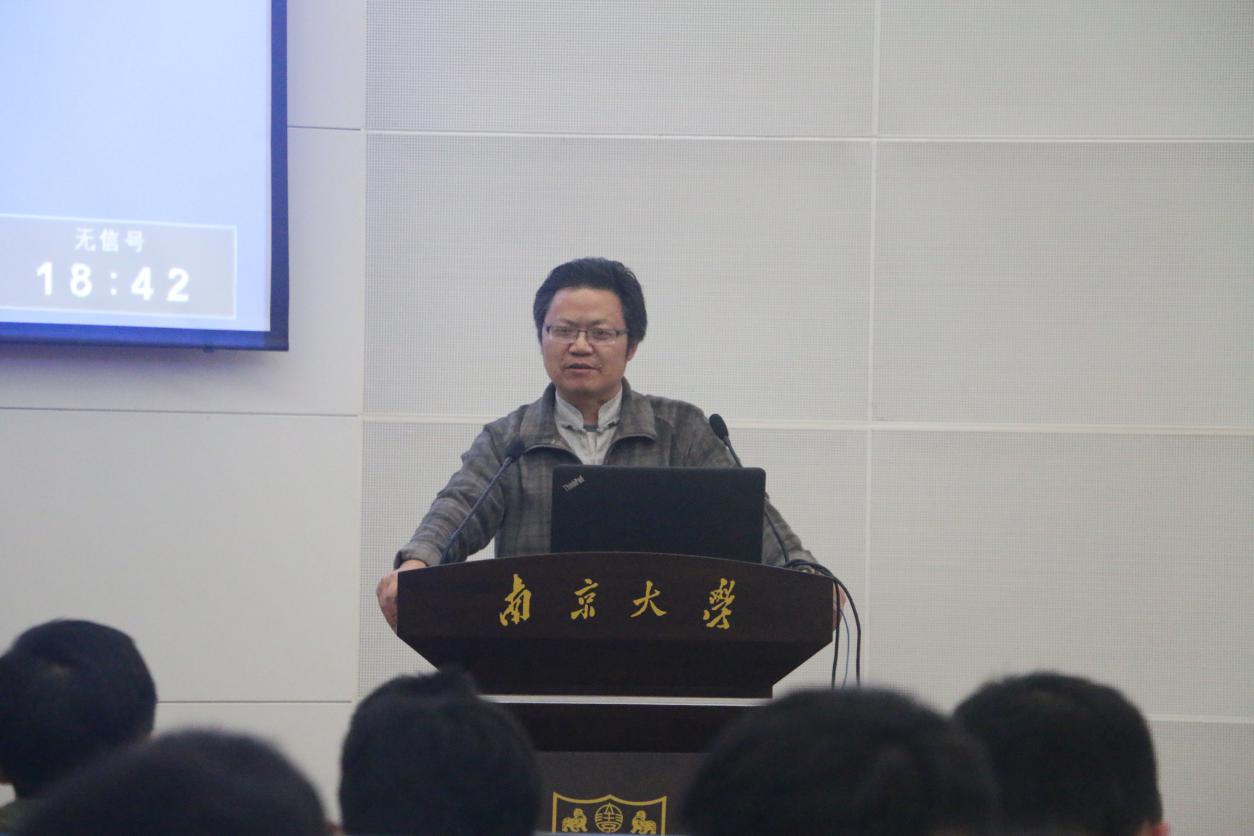 首先,王颖院士上台致辞,作为地海学院资深院士,她鼓励师生“发扬传统,保持特色,创新前进”。王院士从地理学院的历史发展,到地理学院走出的学生广受欢迎,生动全面介绍了南大地理学院在全国的领先地位。作为起步早、资历老的研究陆海交汇作用的单位之一,在海洋强国战略被国家冠以盛名的今天,地理学院“不能走得慢、不能落后”,应继续在自然科学和技术科学等多个领域为南海问题积极出力。陆地与海洋并重的地理学院任何时候都不能抛弃海洋,王院士积极鼓励大家选择海洋专业,促进个人发展,满足时代需求。