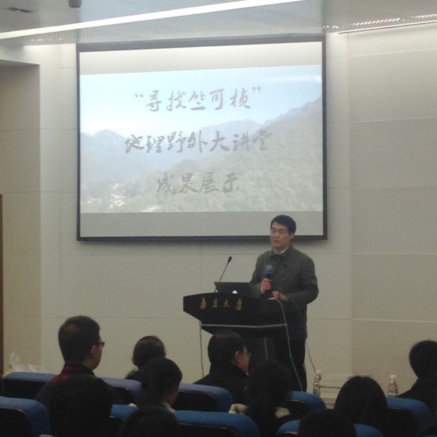 首先,由鹿化煜院长进行开场致辞,鹿院长讲述了自己对于九华山的映象,同时介绍同时间内自己所进行的地理活动,以一个前辈的身份对同学们进行谆谆教诲,并对同学们寄予深厚期望。同时,鹿院长还将“温家宝爷爷的笔记”带到了报告会的现场,并准备赠送每个小组,引得大家连连鼓掌。