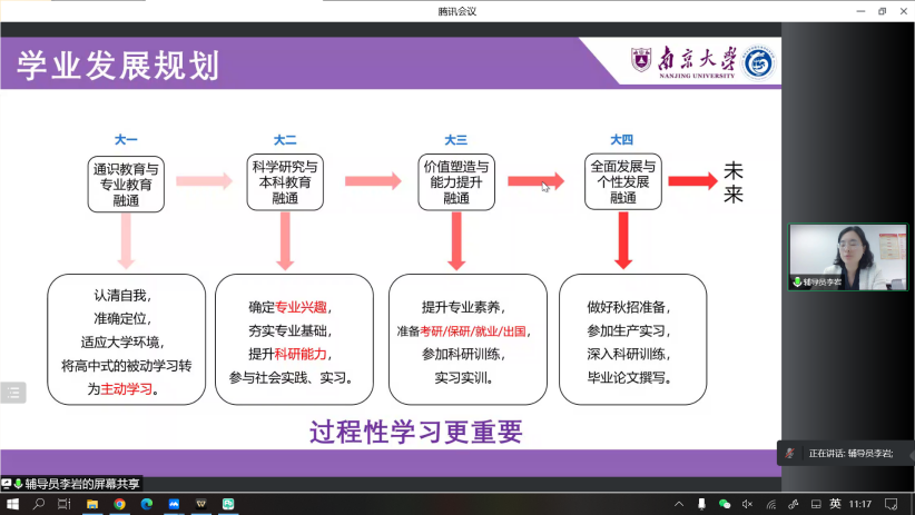 为进一步深入贯彻“育教融合,家校共建”的教育理念,促进学校家庭共同携手,构建和谐的家校育人共同体,地理与海洋科学学院于10月6日上午召开了“育教融合开新篇 家校共建育新人”——南京大学地理与海洋科学学院2021级云家长会。学院党委副书记陈卉老师、副院长金晓斌老师、本科生辅导员李岩老师以及2021级学生家长50余人共同参加了本次线上会议,会议由辅导员李岩主持。