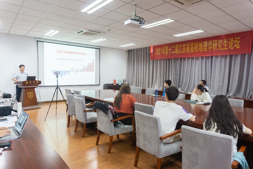 2021年6月19日,第十二届江苏省高校地理学研究生论坛成功举办,本次论坛由南京大学地理与海洋科学学院、河海大学水文水资源学院、南京师范大学地理科学学院、中科院南京地理与湖泊研究所联合主办,南京大学地理与海洋科学学院承办。本次论坛成功邀请到中国地理学会副理事长、国家杰出青年基金获得者、长江学者特聘教授、南京大学地理与海洋科学学院院长鹿化煜教授;江苏省遥感与地理信息系统学会副秘书长、江苏省测绘地理信息学会国际交流委员会副主任、南京师范大学地理科学学院张雪英教授;中国自然资源学会湿地专委会理事、河海大学水文水资源学院王红教授等。出于防疫要求,论坛特邀报告部分采用线上结合线下会议以及平台直播方式,研究生交流部分采用线上会议方式。