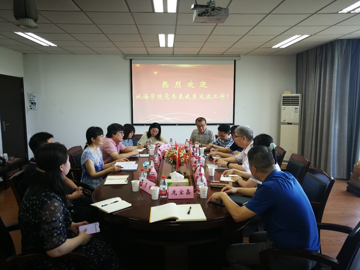 2021年8月31日上午,南京大学地理与海洋科学学院党委书记李满春,副书记陈卉,党委群工委员、副院长张立峰,党委统战委员、副院长金晓斌,党委宣传委员刘绍文,党委秘书杨旸等一行赴我校哲学系(宗教学系)调研。哲学系党委书记周爱群,党委纪检委员、系副主任刘鹏,党委宣传委员、系副主任李跃华,系办公室主任季林,党委秘书霍杰,本科生辅导员白瑞等出席座谈会,周爱群书记主持座谈会。