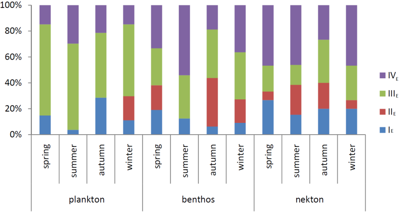 生态系统健康评价是生态系统保护和监测的重要内容。近岸海域生态系统与人类活动关联密切,近年来,越来越多的环境保护和监管部门以近岸海域生态系统稳定性和健康状态的持续保持为主要目标,该过程迫切需要综合性强、准确性高的评估系统来实现。生物多样性指标定量反映生物群落内物种多样性、丰富性和均匀性程度,是用来判断生物群落结构变化或生态系统稳定性的指标;生态能质指标不仅可以在时间尺度上度量生态系统的发展状况,还能从生态系统的结构及其所包含的微观信息上衡量系统的健康程度。为了定量评估研究区生态系统整体结构功能,课题组以江苏近岸海域水环境和沉积环境时空分布特征为背景,从近岸海域生态系统自身结构功能的角度出发,定量评价了江苏近岸海域生态系统健康状态的时空变化趋势。研究发现:(1)浮游植物群落以硅藻为主,江苏近岸海域南部(长江口北岸和养殖区附近海域)和北部(海州湾海域)为密集区;浮游动物群落以水母类、桡足类以及浮游幼体为主,渔场、河口较密集;底栖动物群落以多毛类、甲壳类和软体类为主,海州湾海域为底栖动物的密集区;游泳动物群落以鱼类为主,长江口北岸附近海域为密集区,各群落共同季节特征为夏季种类数多,密度大,2009-2012年群落结构等级赋值年际变化总趋势除浮游植物群落为增长外,其余群落都为下降;(2)不论是季节变化还是年际变化规律,江苏近岸海域生态系统生态能质等级以Ⅲ类和Ⅳ类系统居多,其中除浮游动物生态系统Ⅲ类占比最高外,浮游植物、大型底栖动物以及游泳动物生态系统生态能质等级第Ⅳ类占比最高;(3)生态系统健康态的整体性评估结果为:季节变化——秋季健康等级偏高,春季和冬季其次,夏季最低;年际变化——2006年整个江苏近岸海域生态系统健康等级偏高,2009年最低,具体为2006年>2012年>2009年,但生态系统健康等级年际变化总趋势为降低;空间变化——南部海域健康等级偏高,北部海域其次,中部海域最低。该研究建立适合近岸海域生态系统健康的整体评估体系,并突出了生态系统健康状态时空变化和系统自身结构功能健康状态及稳定程度的整体性评估方法,生态系统各子系统及指标量纲通过等级划分和赋分方式进入整体性评估体系,评估结果最终以多边形面积大小来反映,较为客观可靠。该方法的适用性强,只要系统的生态能质等级和群落结构等级可以被估算,该研究方法都适用,这对近岸海域生态系统管理和环境监测有重要指导意义。