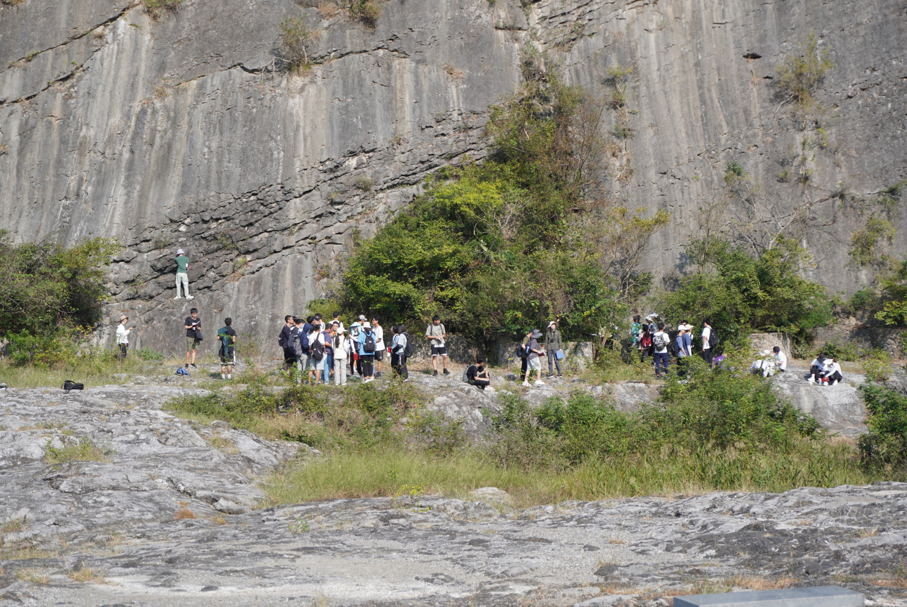 图1 赖文老师在讲解黄龙组灰岩的成因
