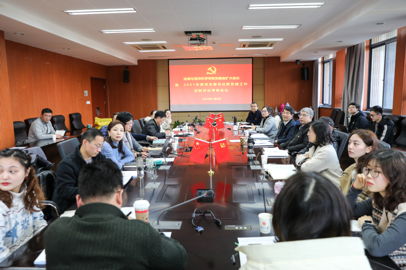 2022年1月6日,地理与海洋科学学院党委在昆山楼B237会议室召开党委会扩大会议暨2021年度党支部书记抓党建工作述职评议考核会。会议由学院党委李满春书记主持,学院全体党委委员和党支部书记参加会议。
