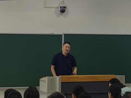 鹿化煜院长对新生们的热忱表示欣慰。随后,他对学院与学科的情况作了充分介绍。他指出,地理科学不仅覆盖面广,还与人类生产生活以及长远发展密切相关。如今,在人工智能日益强大的时代背景下,地理科学仍前景宽广。鹿院长借助学院前辈竺可桢、胡焕庸先生的事迹对新生们寄予期望,鼓励向前辈们看齐,争取在地理之路上有所建树。随后,鹿院长为新生们赠送了学院百年院庆纪念衫。