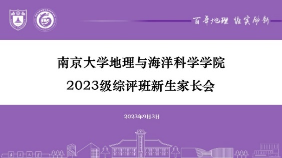 2023年是南京大学地理与海洋科学学院通过综合评价方式对江苏省内成绩优异且对地理有浓厚兴趣的学子进行招生的第一年。学院高度重视首届“综评班”人才培养,为了迎接新生,深入贯彻“育教融合,家校共建”的教育理念,我院于9月3日和9月5日先后召开“2023级综评班新生家长会”和“2023级综评班新生茶话会”两场综评班迎新活动。