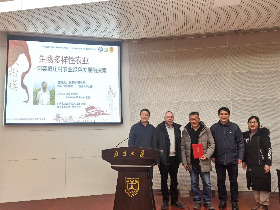 12月30日,应南京大学地理与海洋科学学院邀请,“时代楷模”、全国先进工作者、全国敬业奉献道德模范赵亚夫研究员,在昆山楼报告厅为全院师生作了题为《生物多样性农业——句容戴庄村农业绿色发展的探索》的报告讲座,地理与海洋科学学院院长鹿化煜教授出席并主持了报告会。