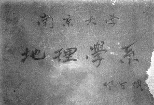 竺可桢先生亲笔书写的南京大学地理学系匾牌