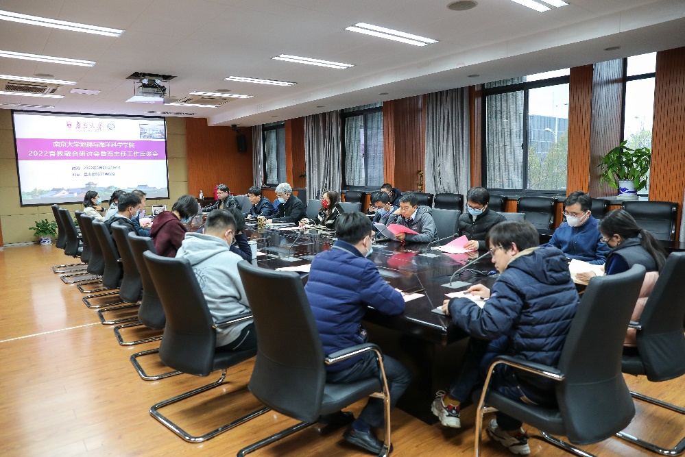 为进一步推动南京大学“熔炉工程”和“三元四维”人才培养体系落实落地,充分发挥班主任的重要作用,我院于3月21日下午,在昆山楼237召开了2022育教融合研讨会暨班主任工作座谈会。院长鹿化煜、党委书记李满春、副院长金晓斌、党委副书记陈卉、各系教学系主任、本科生班主任、教务员王玮、辅导员李岩通过线上线下联合的方式参加了此次会议,会议由金晓斌副院长主持。