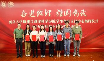 在与会嘉宾的共同见证下,南京大学地理与海洋科学学院学生生涯支持中心正式揭牌。