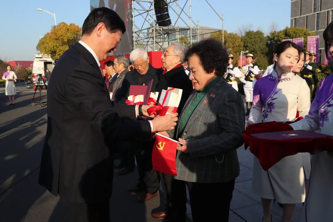 “历史雄辩地证明,没有中国共产党就没有新中国,没有中国共产党就没有中国特色社会主义,没有中国共产党就没有中华民族的伟大复兴。” 南京大学党委书记胡金波在讲话中指出,南京大学始终与时代同呼吸、与民族共命运,谋国家之强盛、求科学之进步,为党育人才、为国铸栋梁,从校园里前赴后继地走出了一代又一代共产党人,涌现出一批又一批视死如归的革命先烈、顽强奋斗的英雄人物、忘我奉献的先进模范。胡金波为地理与海洋科学学院王颖院士等10位老党员颁发了感谢状,老党员为新党员代表授党徽,赠送党史读物,期望他们勇担使命、不懈奋斗。在胡金波的带领下,新党员宣誓入党,老党员重温入党誓词。